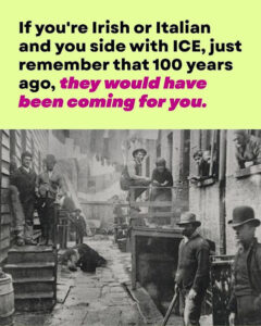 Did my grandparents face prejudice and discrimination in this country? I’m sure they did. One hundred years ago (in 1926) many faced prejudice. But nobody was “coming for” my grandparents or for my parents.