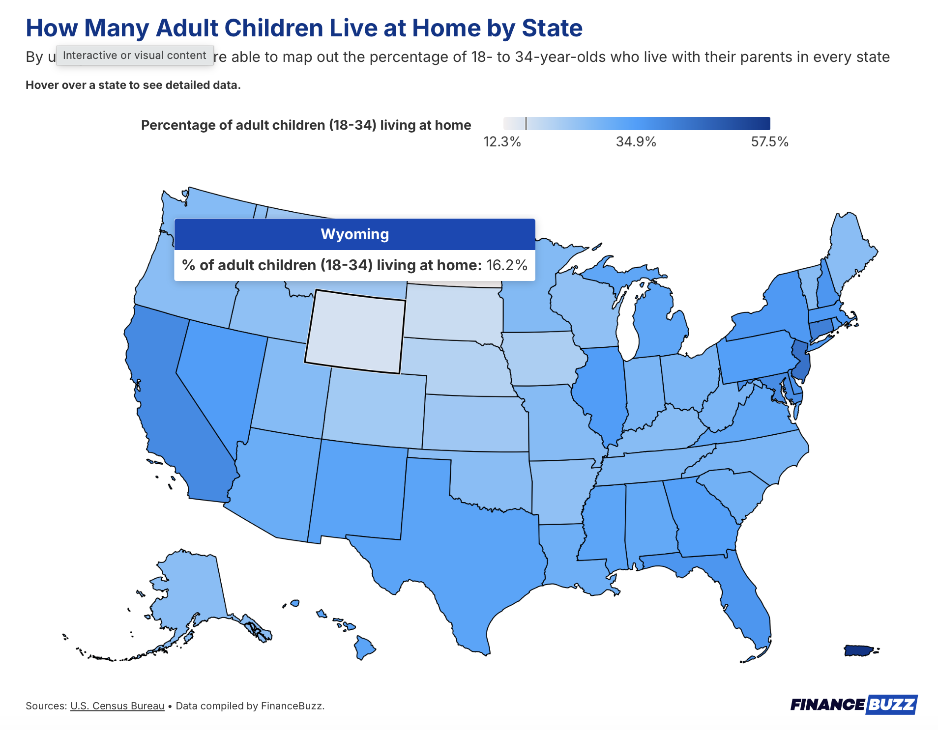 A larger percentage of “adult children” live at home with their parents here than in any other state in the country. 44.1% of New Jerseyans between the ages of 18 and 34 are cohabitating with their mom and dad, measurably ahead of Connecticut (41.3%), California (39.1%), and Maryland (38.5%). Generally and unsurprisingly, “blue states” with high costs of living see far more of their young adults staying in the nest relative to red states like North Dakota (12.3%) and Wyoming (16.2%).